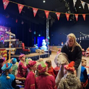 Ook vandaag bij de intocht van Sinterklaas was de EHBO aanwezig met 2 vrijwilligers. Er werd een pleister geplakt, maar verder is alles heel goed verlopen. ’s Middags was het vooral te doen in de Drie Linden. In een aantal sessies waren de kinderen in de grote zaal aanwezig bij Sinterklaas en alle pieten. De laatste sessie was speciaal voor kinderen die een beperking hebben en waarbij alles geluidsarm uitgevoerd werd.