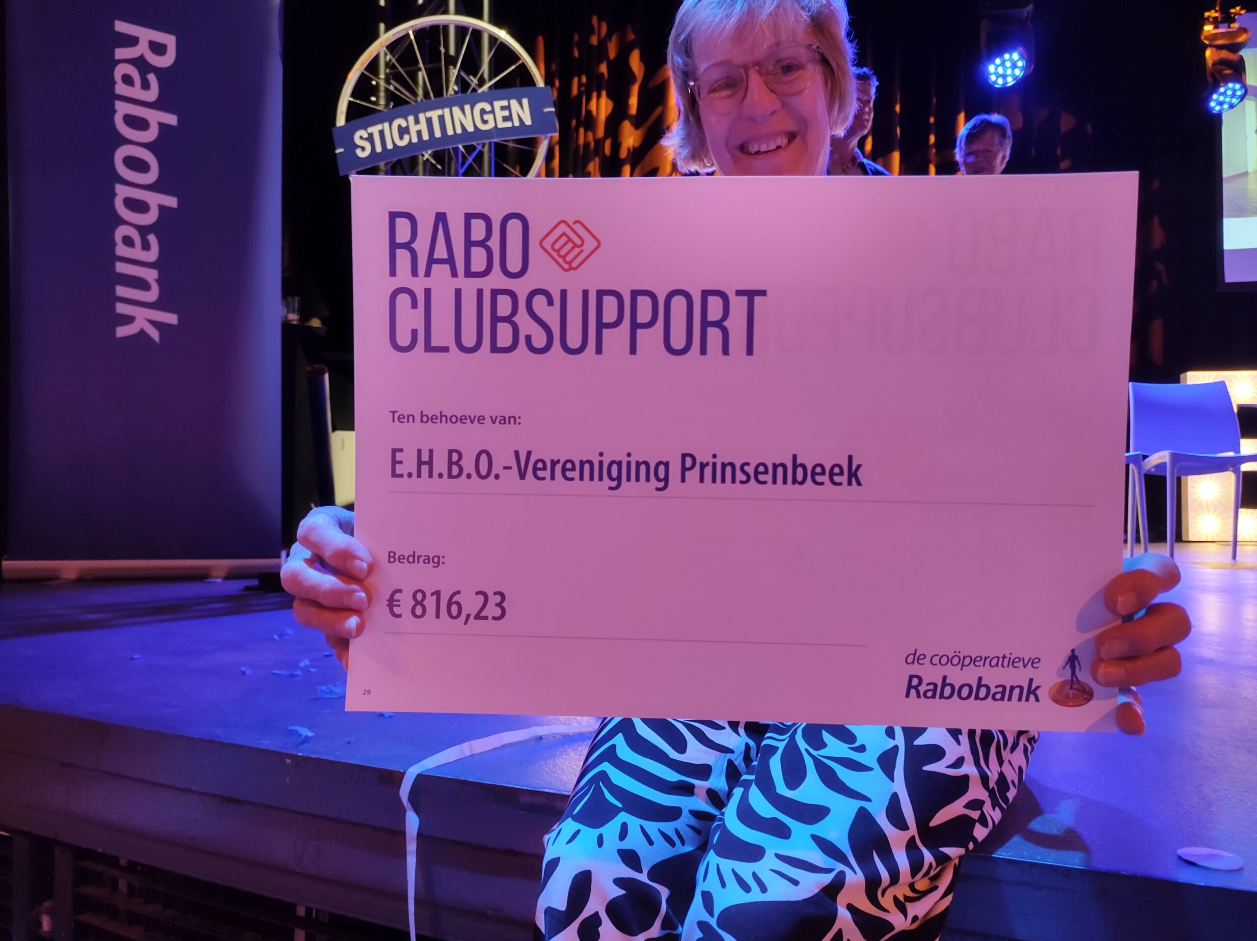 Zie hieronder het mooie bedrag dat de E.H.B.O.-vereniging gekregen heeft.